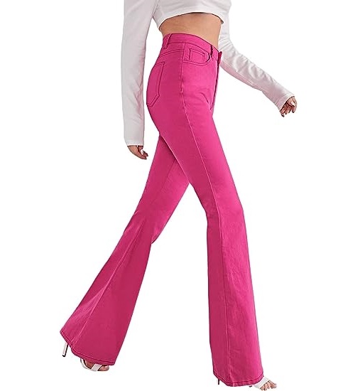 Women's Casual Denim Pants High Waist Stretchy Bell Bottom Flared Jeans